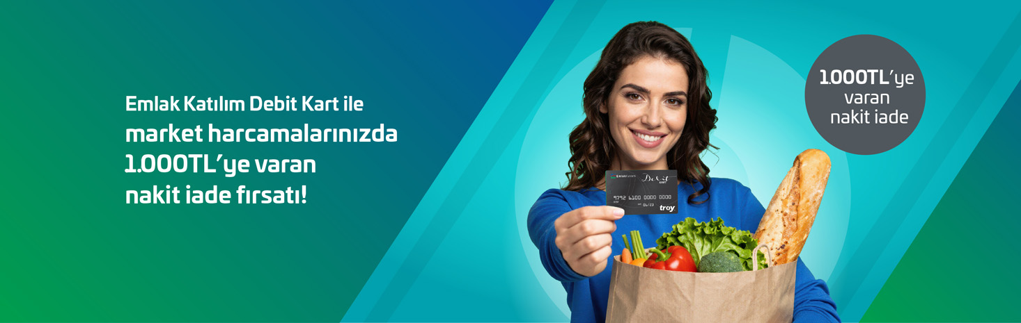 Emlak Katılım Debit Kart ile Market Alışverişlerinize Toplam 1.000 TL Nakit İade Fırsatı! 15 Ocak 2026 – 15 Şubat 2026 tarihleri arasında, Emlak Katılım Debit Kart ile farklı günlerde, tek seferde yapacağınız 1.500 TL ve üzeri market alışverişlerinizde 200 TL, toplamda 1.000 TL nakit iade fırsatı sizi bekliyor. Kampanya Koşulları: Kampanya müşteri bazında geçerli olup, bir müşteriye en fazla 1.000 TL nakit iade yapılabilecektir. Bireysel Emlak Katılım TROY Debit Kart sahipleri kampanyadan yalnızca bir defa yararlanabilir. Aynı gün yapılan alışverişlerden sadece ilki kampanyaya kapsamında değerlendirilir. Kampanya, diğer kampanyalarla birleştirilemez. Müşteriye ait birden fazla kart ile işlem yapılması durumunda, kampanya şartlarını sağlayan ilk harcama dikkate alınır ve tek sefer ödül yüklemesi yapılır. Birden fazla debit karta sahip müşterilerin, tüm kartları ile yaptığı harcamalar tek kampanya kapsamında değerlendirilir. Fiziki POS ve sanal POS üzerinden yapılan harcamalar kampanyaya dahildir. Fatura ödemeleri, düzenli ödemeler, para yatırma/çekme işlemleri, vergi ve bağış ödemeleri, BES ödemeleri, bakiye görüntüleme ve para transferi işlemleri kampanya kapsamı dışındadır. Alışverişin iptal/iade edilmesi durumunda nakit iade yapılmayacaktır. Finans kuruluşları ve ödeme hizmet sağlayıcıları üzerinden gerçekleştirilen işlemler, dijital cüzdan yüklemeleri ve dijital cüzdanlar aracılığıyla yapılan harcamalar kampanyaya dahil değildir. Nakit iade kazanımı için, kampanyaya katılım sağlandıktan sonra yapılan harcamalar dikkate alınır.Harcama yapıldıktan sonra kampanyaya katılım sağlanması durumunda ödül yüklemesi yapılmaz. Alışverişin yapıldığı iş yerinin, sistemde kayıtlı sektör bilgisinin doğru olmasından iş yeri sorumludur. Kampanyaya dahil olan iş yeri kodları (MCC): 5300, 5311, 5331, 5399, 5411, 5422, 5441, 5451, 5462, 5499 Emlak Katılım Bankası kampanyayı dilediği zaman durdurma ve/veya kampanya koşullarını değiştirme hakkına sahiptir. Kampanyaya Nasıl Katılırım? Kampanyaya katılmak için “GIDA” yazıp 6026’ya SMS gönderilmesi gerekmektedir. Kampanya katılımının başarılı sayılabilmesi için Banka sisteminde adınıza tanımlı telefon numarasından katılım sağlanmalıdır. Nakit İade Yüklenmesi Ne Zaman Yapılır? Kampanya kapsamında kazanılan nakit iadeler kampanya bitiminden sonra 15 gün içerisinde kampanya koşullarını sağlayan müşterilerimizin kullanıma açık Bireysel Debit Kartlarının bağlı olduğu cari hesaba yüklenecektir.